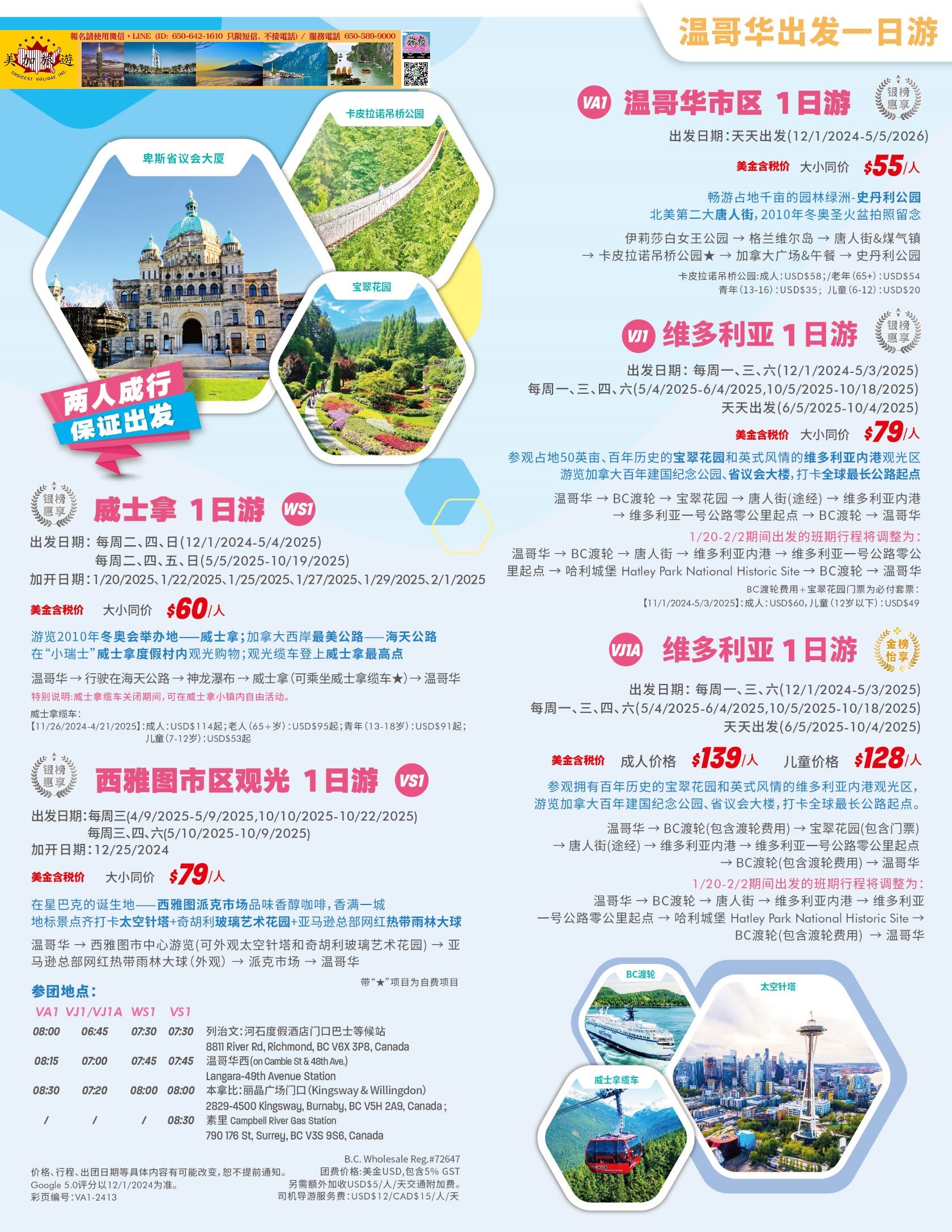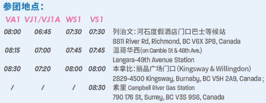 12. 由於油價的大幅上漲,車輛使用成本大大增加,2022年4月1日起,所有的巴士團產品需加收交通附加費$5/人/天,請下單時和團費一起支付。