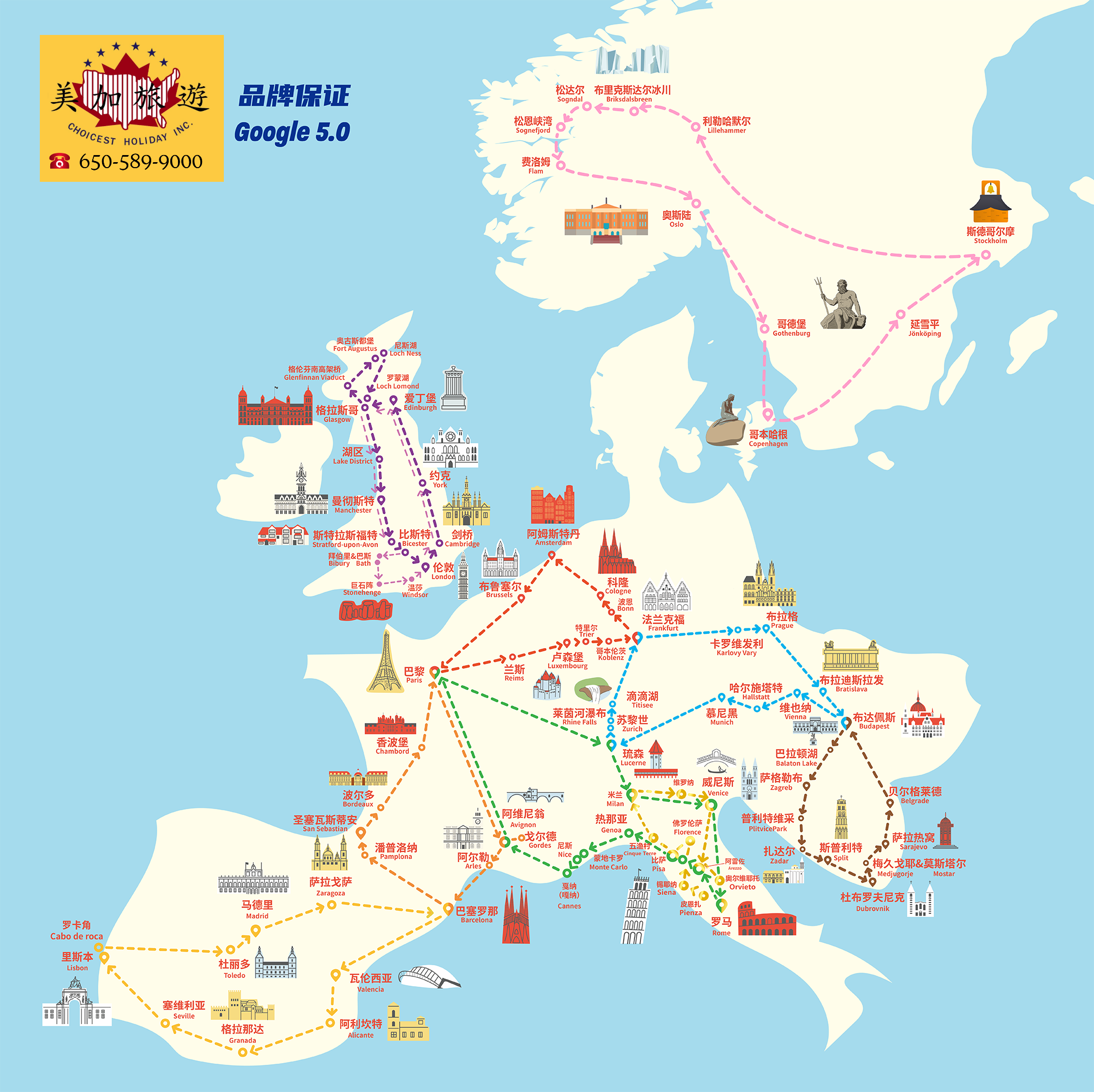 - 九條路線、每周循環、全年不停、保證出發當地參團、中文導游、旅游大巴、三-四星酒店、超值團費。