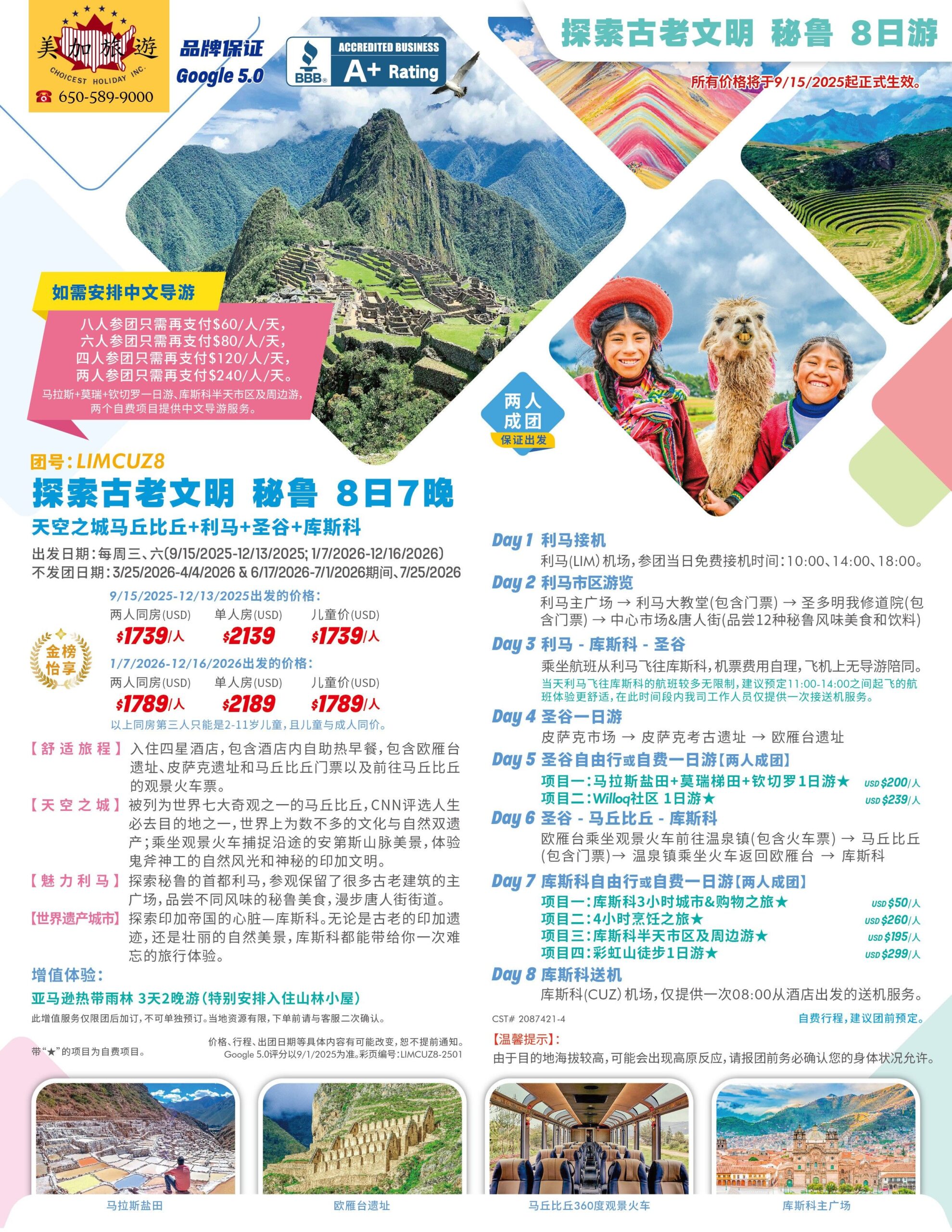 價格 & 出發日期 請參考行程彩頁,最終確認報價以公司銷售人員所述為準。