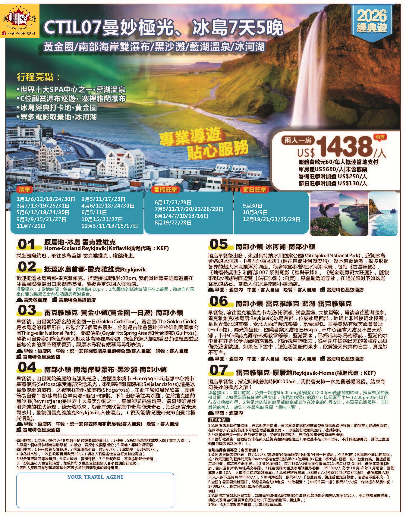 • 請參考彩業上的價格 & 出團日期(有更新)。