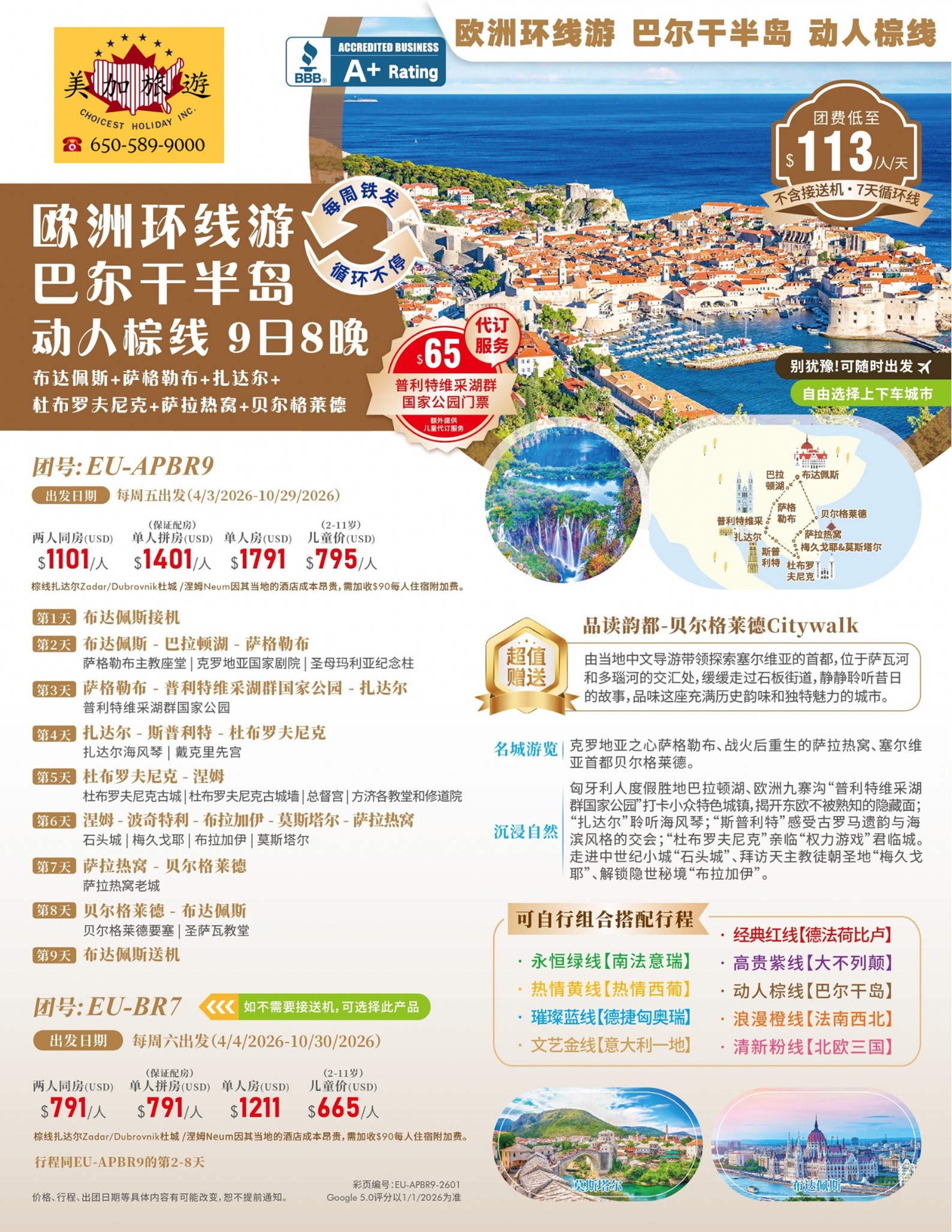 - 棕線紮達爾Zadar/Dubrovnik杜城 /涅姆Neum因其當地的酒店成本昂貴,需加收$90每人住宿附加費(已綁定必付增值服務)
