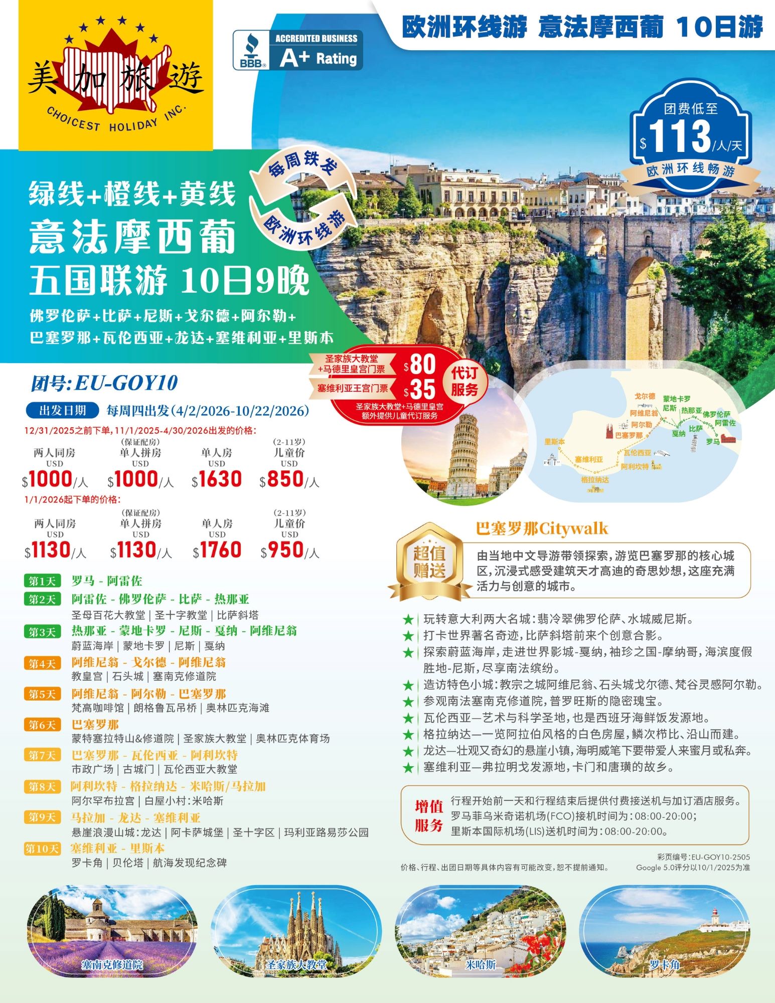 - 服務:全程中英雙語華人導遊服務。
