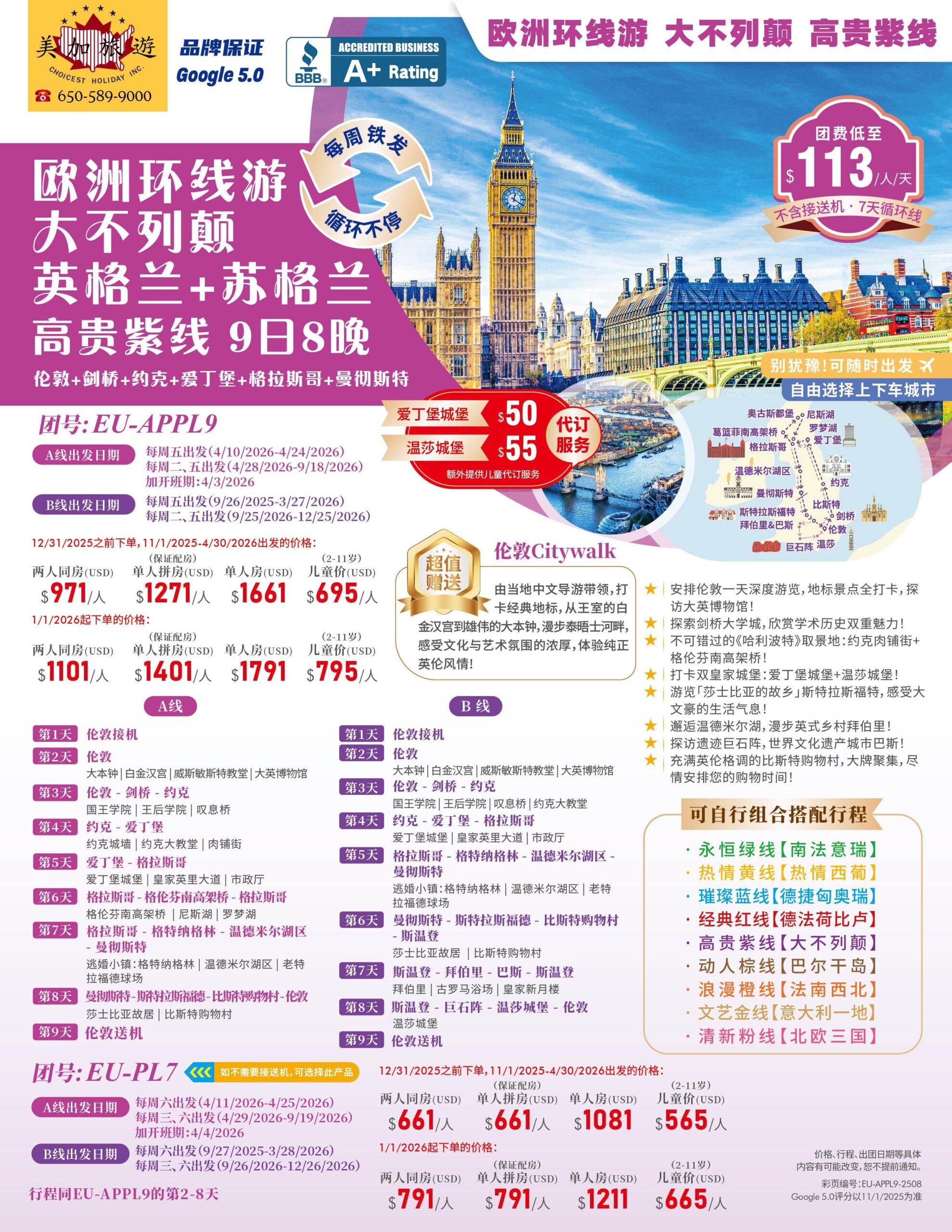 - 服務:全程中英雙語華人導遊服務。