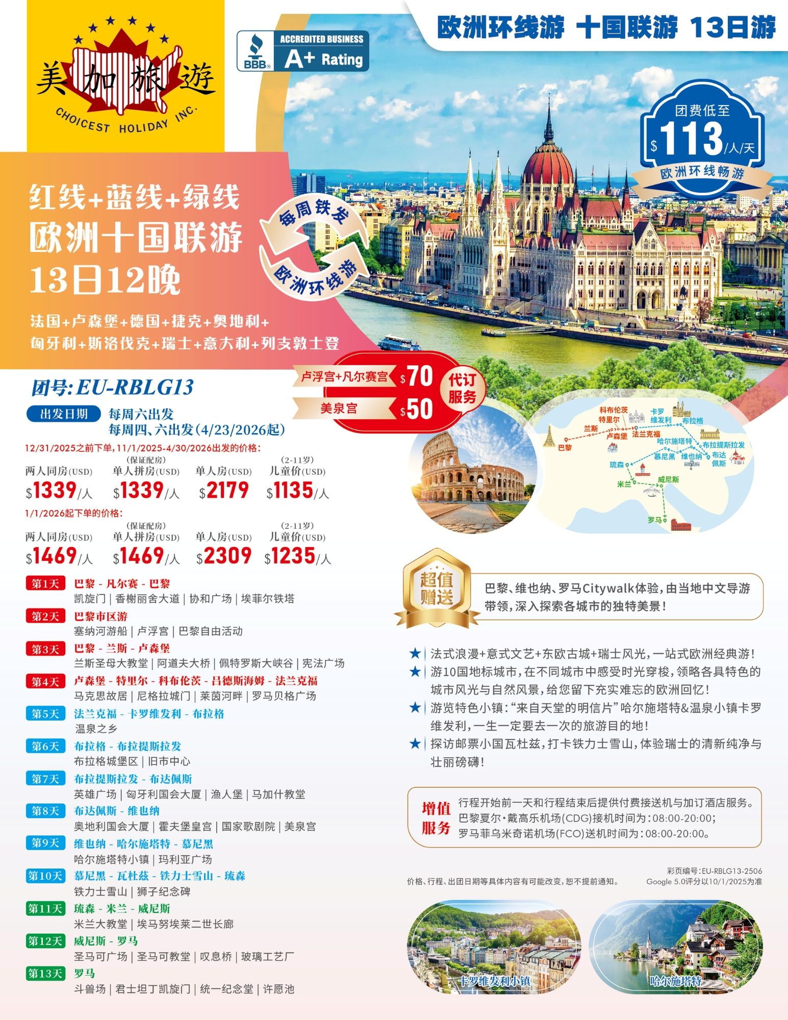 - 特別贈送巴黎、維也納、羅馬Citywalk體驗,由當地中文導遊帶領,深入探索各城市的獨特美景!