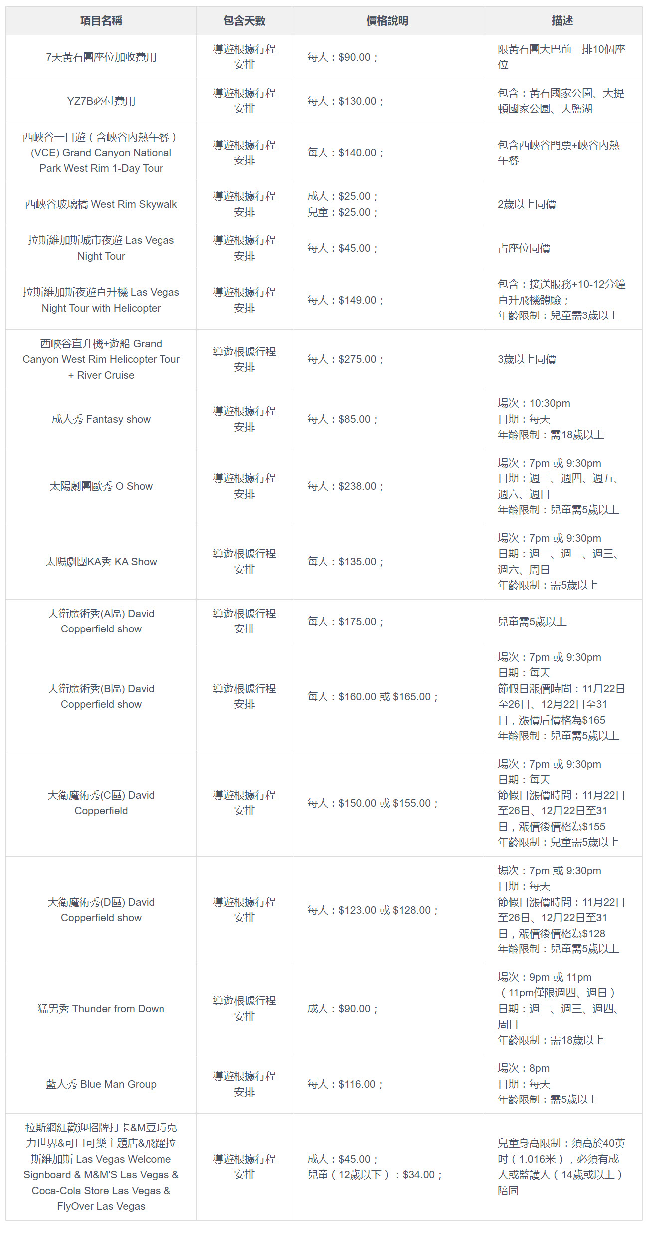 7. 如遇景點臨時關閉或節假日休息等,導致無法參觀,導遊會根據實際情況調整為外觀或以其他景點代替以確保行程的豐富性。各景點及國家公園的開放時間及流量控制會因疫情不時變化,如影響行程屬不可抗力因素,敬請諒解。