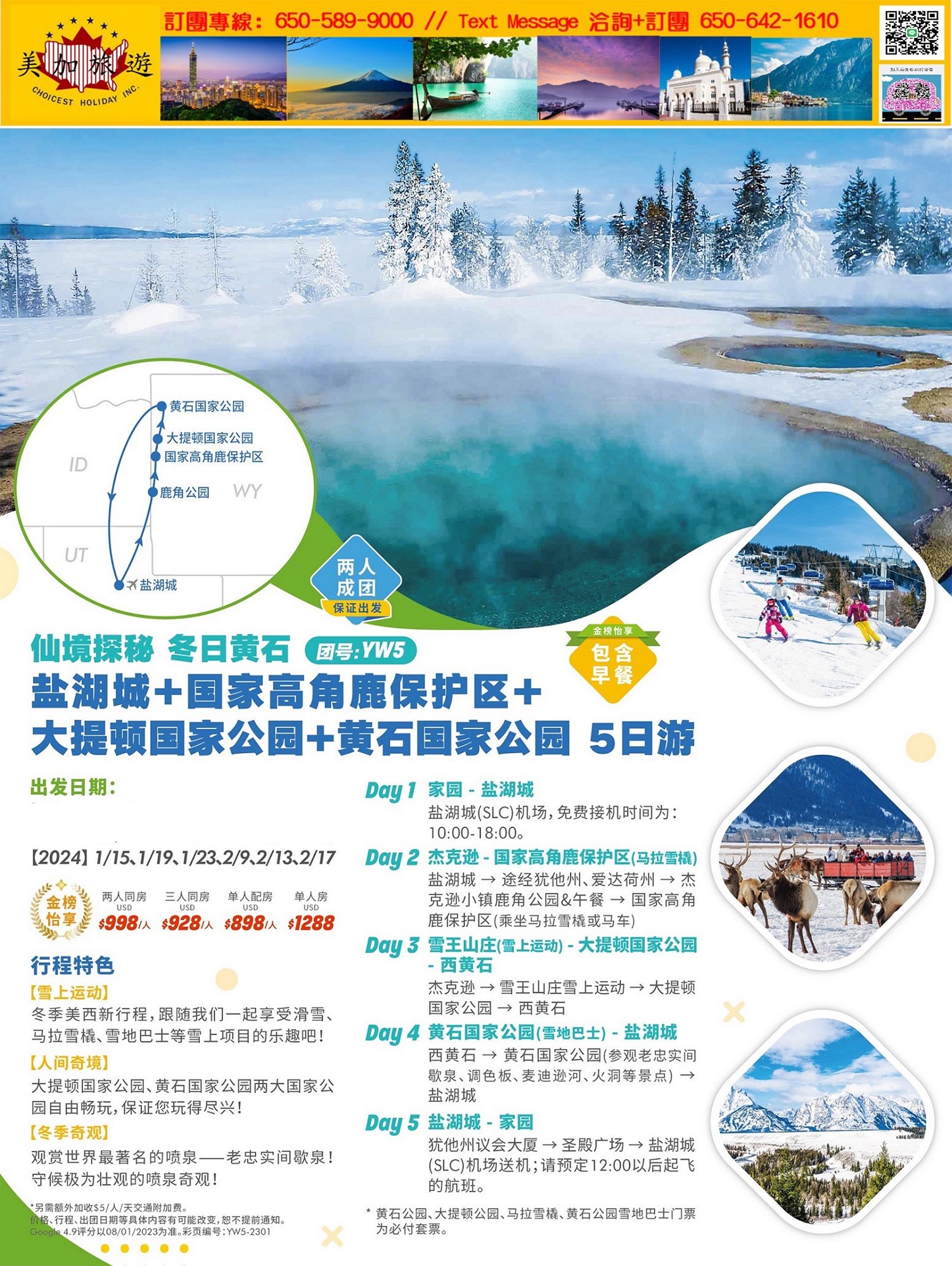 如果您來到黃石公園是為了看野生動物,那麼海登山谷 (Hayden Valley) 絕對是您的首選!這裡是黃石公園內野生動物最密集、最活躍的地區之一,被譽為「野生動物的天堂」。🦌 野生動物的集散地海登山谷廣闊的草坪與流經其中的黃石河,為動物們提供了完美的棲息環境:美洲大野牛 (Bison): 這裡是觀賞野牛群的最佳地點。您經常可以看到成百上千頭野牛在谷中漫步、過馬路,甚至造成壯觀的「野牛大塞車 (Bison Traffic Jam)」。棕熊與黑熊 (Bears): 清晨或傍晚,山谷邊緣的樹林常有熊隻出沒覓食。加拿大馬鹿 (Elk): 牠們常在開闊的草原上成群出現。鳥類天堂: 這裡也能見到鵜鶘、天鵝以及各種水鳥在河面游弋。💡 參觀小建議(美加旅遊真心推薦)最佳觀賞時間: * 清晨 (Sunrise) 或 黃昏 (Dusk) 是動物活動最頻繁的時候。此時山谷常有薄霧籠罩,光線柔和,是攝影師眼中的黃金時刻。必備裝備: * 一定要帶上望遠鏡或長焦鏡頭!為了安全與尊重自然,法律規定必須與熊保持 91 公尺、與其他動物保持 23 公尺以上的距離。交通規劃: * 海登山谷位於峽谷區 (Canyon Village) 和黃石湖 (Yellowstone Lake) 之間。這段路開車非常愜意,建議預留充足的時間,因為隨時可能因為動物過馬路而停車。🚐 選擇美加旅遊,輕鬆看動物在海登山谷開車,有時候為了找停車位看動物會比較麻煩。參加美加旅遊 (C-Holiday) 的行程,我們經驗豐富的導遊具備敏銳的「動物偵測雷達」,能精準帶您到最佳觀測點。#跟著老闆去旅行 #黃石公園 #haydenvalleyyellowstone